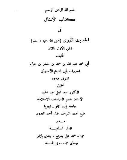 أمثال الحديث لأبي الشيخ الأصبهاني